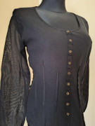 čierny top s dlhým rukávom, predný diel elastický, jemný materiál , jemne priehľadný, zdobený vkusnými odševkami
