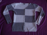 Príjemný dámsky svetrík s šachovnicovým vzorom, na PD,inak je biely,zapínanie na gombíky,dlžka 55 cm,šírka 2 x43 cm až poda sa do 47 cm,velkosť S oblečie i menšie M, ,dobrý stav bez chýb,dcera triedi,pošta alebo packeta 3,80 e,pri viacero aukcii platite 1 poštovné podla tarif pošty