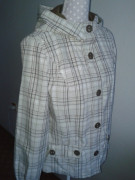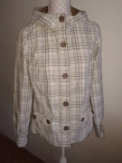 luxusná prechodná bundička značky Lerros, oblečená asi 3x dcérou, vypratá, vyžehlená, vyvoňaná, bavlna , podšitá, s kapucňou, kopec doplnkov, zapínanie na veľké hnedé gombíky, vzadu pásik s gombíkmi....veľ. 38 aj sedí...dlžka 61, prsia 49x2,, spodok 56x2, rukáv od krku 76, šírka ramien.41..elastická nie je...
