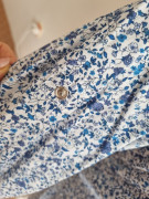 Nenosená..skladovaná je mi veľká ..cez prsia 51x2, rukáv od krku 75, dĺžka od ramena 69..elasticka nie je..zapinanie na cvoky, rukávy sa dajú rolovať a vypnúť