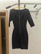 Predám takmer úplne nové - raz vzaté, nemajú žiadne známky nosenia - šaty značky Orsay. Tmavomodré, s aplikáciou bielo - modro - tyrkysovej farby na prednom diely. Vzadu zips, pohodlný - veľmi pružný materiál. Veľkosť 34 - aj sedí. Hrudník 2x40cm.pás 2x 33 cm, celková dĺžka 90cm, trištvrťové rukávy. Kuk, triedim šaty.