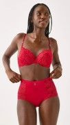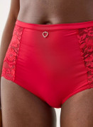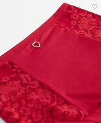 Nohavičky s vysokým pásom a čipkovanými detailmi na bokoch.