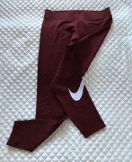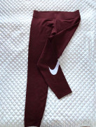 Posúvame športové legíny NIKE v nádhernej hnedej farbe s kontrastným bielym pogumovaným logom značky na jednej nohe. Pohodlná široká guma v páse, krásna kombinácia farieb, elastické.