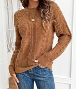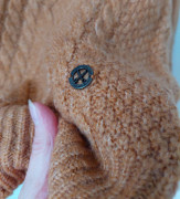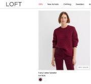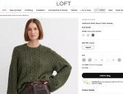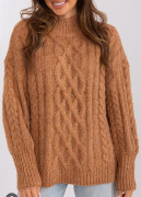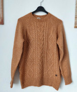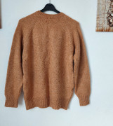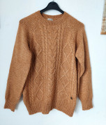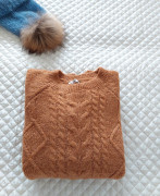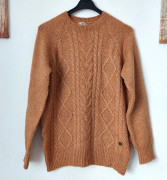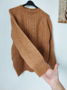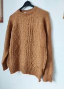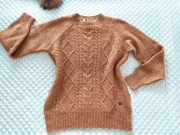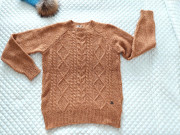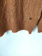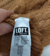 Posúvam mäkučký, teplý sveter luxusnej značky LOFT vo veľmi príjemnej camel farbe, pekný vypletaný vzor, na svetríku našité kovové logo značky.