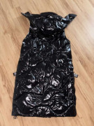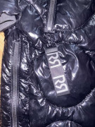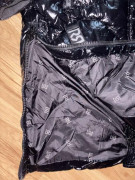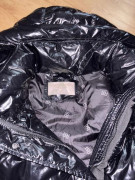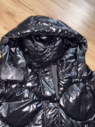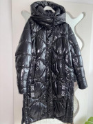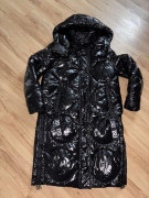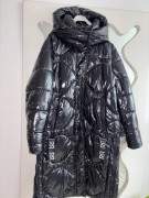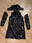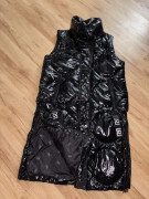 Oblečená 1 x, čierna teplá bunda/kabát, po odopnuti rukávov vesta,lesklá vatovana, spodná časť sa dá pobokoch rozopnut, rovnako kapucňa, veľkosť S, aj na M, šírka pod pazuchami 54 cm, dĺžka 100 cm
