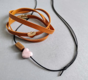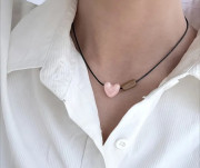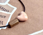 Náhrdelník - čierna koženková šnúrka, nastaviteľný. Ozdobený keramickým srdiečkom a drevenou korálkou.