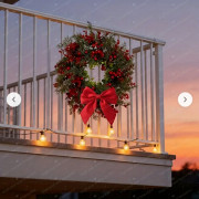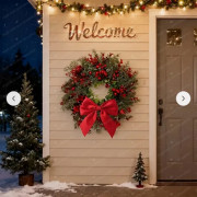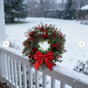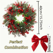 Vianočný veniec s klasickou mašľou, 15.75-Palcový - realistické červené bobule & zelené listy vyrobené z vysokokvalitného plastu pre vnútorné/vonkajšie použitie - sviatočné dekorácie - pred dvere, na okná atď, Viď podmienky predaja!