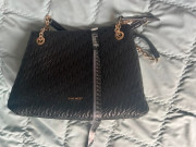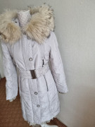Oblečená asi 5x..pc 390 eur..predávam za zlomok...ľahučká...teplá..obojstranný zips...pletené náplety ako golier, na spodku aj konce rukávov.....dĺžka 97..prsia 48x2..pás 44x2..boky 50x2..rukav od krku 76..kupovaná v predajni Kara, pravá kožušina mývala, dá sa z kapucne odopnúť.. + grátis málo použivaná kabelka NINE WEST