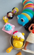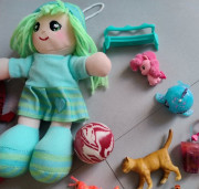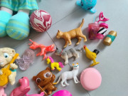 Kopec hračiek a drobnosti pre dievčatko. Dcerka triedila, vacsina z nich je kupovaných v Dráčiku, ja ani neviem co to všetko je. Ponici, Num Noms, mačičky, loptička, šitá bábika, antisresova húsenička, Vaiana, doplnky k LOL...