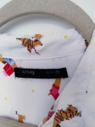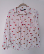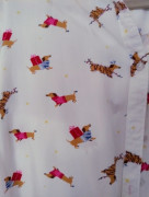 Krásna vianočná dámska košeľa / blúzka - biely podklad s potiacou psíkov. Vynikajúci stav, príjemný padavý mäkký materiál 100% viskóza