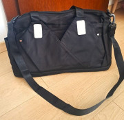 Cierna cestovna taska. Nova. Rozmery: cca 29 cm x 47 cm (merane v najsirsej spodnej casti). Da sa dat aj na rucku kufra (ako na detail. foto). Taska sa da aj odzipsovanim trosku zvacsit naspodu.