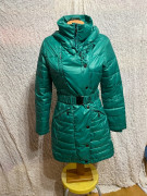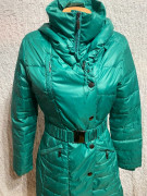 kvalitný materiál, páperová, podšitá s opaskom. nosená máločo.