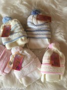NOVÝ TOVAR!! Zimný set pre novorodencov /bábatká/, čiapka a šál, vo viacerých farbách pre chlapcov aj dievčatá. Čiapočka má šnúrku pre uviazanie a krytky na ušká. Materiál: 100% akryl. Dvojitá, veľmi teplučká čiapka vhodná na zimu.