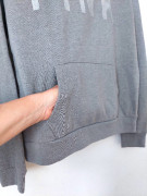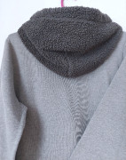 Zaujímavá mikina - sivý svetlý melír s logom a klokaním vreckom vpredu s kontrastnou tmavo sivou barančekovou kapucňou.