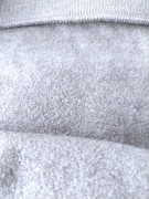 Mäkučký, príjemný materiál - mikina je v skvelom stave - drobná chybička - pri prvom praní na vysokých otáčkach sa mi spravili mini prasklinky na dvoch písmenkách - na foto - viditeľné len z blízka a mikina určite ešte veľmi poteší ;), je veľmi príjemná.