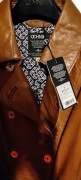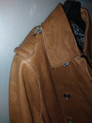 nový, s visačkou, kupovaný v Poľsku za 450 eur...dosť som schudla, je mi veľký posúvam s veľkou zľavou...dlžka 104, prsia 50x2, pás 45x2, boky cca 55x2, rukáv od krku 77, šírka ramien 41...mäkká jahňacia koža..viazanie na rukávoch zlaté dvojradové gombíkové zapínanie, vzorované luxusné futro, opasok....luxusný kúsok..