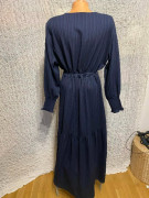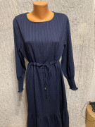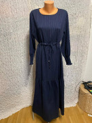 Elegantné dlhé tmavomodré šaty s viazačkou v páse