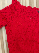 Predám jediný krát vzaté červené čipkované šaty. Kupované pred pár rokmi v Orsay keď ešte Orsay bol Orsay :). Elastické, podšité, pekne sa prispôsobia postave, žiadne zipsy a iné prešitia, ktoré bránia pohybu. Od hrudníka až ku kolenám podšívka, takže čipka vynikne a nič nepresvitá. Veľkosť 34 - aj sedí. Dĺžka 82 cm, hrudník 2x37cm, pás 2x 32 cm, boky - 2x 40cm, rukáv - 30cm. V ďalšej aukcii mám tie isté, ale v modrej farbe. Kuk, triedim šatník...sú mi malé :(