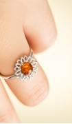 nový strieborný prstienok slnečnica s jantárom