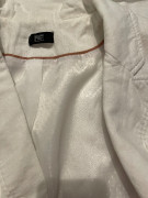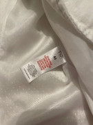 Biele lanove, podsite, skor do pasa. Zapinanie na jeden velky gombik. Velkost 44, take Lko. Bez poskodeni. Na pleciach vypchavky