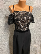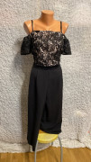 krajka a top kvalitná elastická látka, podšitý. nohavice rovné, veľmi trendy kúsok! objednala som si a on mi je už malý, tak sa potešte. vhodný na udalosť.