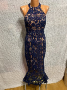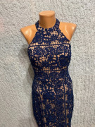 nádherné modré krajkové šaty s béžovou podšívkou Lucy Wang