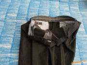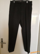 Pánske spoločenské nohavice veľkosť 32 od marks spencer, Sýto čiernej farby ( foto skresluje sýtosť farby). Majú štyri vrecká. Úchytky na opasok, puky. Zapínanie na zips, kovové háčiky, gombík ( vid detail)..Označenie WAIST 81 cm, INSIDE LEG 74 cm. Materiál 65 % polyester, 35 % viskoza.rnMnou namerané - vonkajšia džka 92 cm + šírka pásu, pás 2x42 cm.
