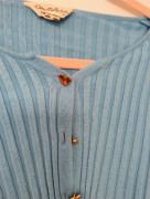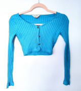 Kupovaný v Anglicku, edícia značky Asos. Ide o kratučký rebrovaný svetrík, alebo top. Zapínanie na kovové srdiečkové gombičky. Uvedená veľkosť 34, sedí na XS.