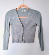 Krásna tlmená sivo modrá farba, vyšité kvietky, zapínanie na gombíky. Super stav. Kratší strih.