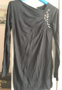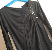 Čierny dámsky top s dlhým rukávom vhodný či na bežné nosenie alebo aj ako elegantné. Veľkosť: L, rozmery: dlžka: 66, cm, obvod: do 90 cm, dlžka rukáv: 58 cm. Zloženie látky: 95 % viscoza, 5 % elastan. Sedí pekne, nosí sa dobre.
