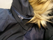 Dlžka 85 cm, prsia 2x55 cm. Tmavo modrý. Zvnútra ukazujem trocha natiahnutý šev, ináč TOP STAV !!