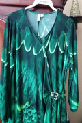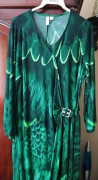 Pekné dámske šaty s potlačou, na boku efektná spona, štýl viazania v páse, príjemný pružný materiál, šírka pod pazuchami 58-60 cm, celková dlžka 112 cm, nové-nenosené