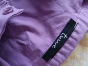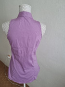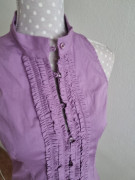 fialová elast. blúzka bez rukávov, len vypratá, nenosená, s volánmii popri zapínaní , dlžka 62, prsia 45x2
