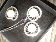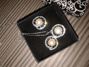 napichovacie náušnice, retiazka s príveskom...nenosené, bižutéria, strieborné prevedenie, s krabičkou, perličky sú také maslové