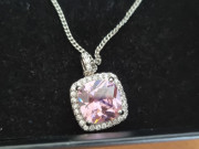 štvorcové ružové kamienky a biele okolo..napichovacie...retiazka s priveskom..strieb.prevedenie