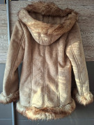 Nenosene, bez poškodenia, s odnímateľnou kapucňou, zapinanie na zips, velkost L, rozmery 2x46 cm hrudnik, 76 cm dlzka