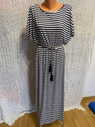 nádherné pruhované tmavomodro biele šaty