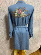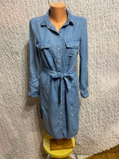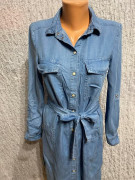 lyocelová riflovinka, košeľové cvočkové zapínaie v celej dlžke, v páse opasok. min. nosené, velkosť je odstrihnutá, sedia na 36-38