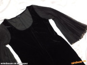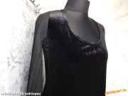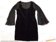 Velmi pekne zamatove saty,čiernej farby,z mierne elastickeho materialu,plisovane presvitne rukavy.90%polyester,10%elastan.ako nove. j12