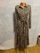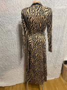 hodvábny úplet s leskom gombíkové zapínanie v celej dlžke, v páse opasok. 2 x nosené, sú mi malé