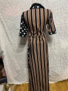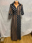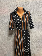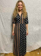 gulkovano pruhované čierno hnedo biele dlhé šaty 212 chic