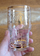 5x pohárik so zlatým zdobením. Výška pohárikov so zlatými pásikmi cca 10,5cm, výška pohárikov s cibuľovým vzorom cca 11cm.
