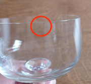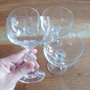 4x pohár na sekt, jeden má malý oťuk na boku, druhý pohár na mikrooťuk na vrchnej hrane, zvyšok OK. Výška cca 12,5cm.