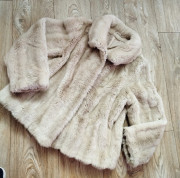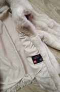 Kožuštek veľkosť L vo výbornom stave párkrát oblečený zapínanie na háčiky teplučky pritom mäkký príjemný , cez hrudník 54 cm, celková dĺžka 60 cm