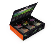 Výber troch ovocných čajov, zeleného, čierneho a bieleho čaju značky Santée v jednej darčekovej kazete.