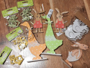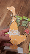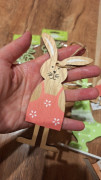 Set veľkonočné dekorácie - prevažne drevené . Všetko čo vidite na fotke: 2x huska, 3x zajačik, 4ks zavesne zahačiky žlte +4ks zelené. Sliepočky su balene 12ks. Uvedené poštovné balik na poštu, packeta= 3.90