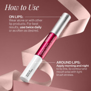 Sérum nelepí a zanecháva na perách jemný, lesklý povrch. Môžete ho nanášať samostatne alebo na rúž bez pocitu mravčenia alebo pálenia, ktorý je bežný pri bežných produktoch. Vyhladzuje tiež vertikálne línie okolo kontúr pier (tzv. fajčiarske línie). Prvé výsledky sú viditeľné už po 4 týždňoch používania!