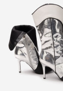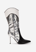 ČIERNO-STRIEBORNÉ ČIŽMY Z EKO KOŽE. VÝŠKA PODPÄTKU 8,5 cm.