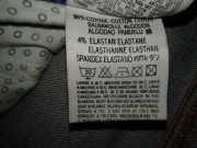 mierne elastické, mierne rozšírené, párkrát oblečené, miery: pás 85, bočná dlžka 101, predný/zadný sed 22/35, šírka stehna v časti rozkroku 27x2, šírka na spodku...23x2