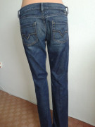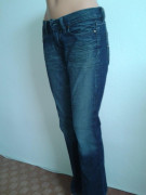 mierne elastické, mierne rozšírené, párkrát oblečené, miery: pás 88, bočná dlžka 102, predný/zadný sed - 22/34, šírka stehna v časti rozkroku 28x2, šírka na spodku 23x2...